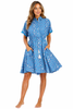 Wholesale Cobalt Blue Block Print Tiered Bell-Sleeve Boho Mini Dress — Ships in 6-Pack Prepacks from Miami